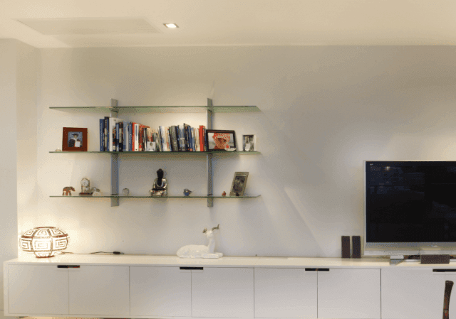 Wall-mounted glass shelves are the ultimate storage solution for any interior space. Be it a home living room, a posh restaurant, or a commercial office setting, glass shelves are perfect for any interior. The floating glass shelves maximize the given space in the most effective manner. The clear surface allows an uninterrupted flow of light and adds depth to the interior.